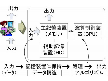 コンピュータプログラムを作成する際、効率のよい適切なアルゴリズムを設計するための知識を養います。講義では基本的なデータ構造や代表的なアルゴリズムを紹介し、実際のコードとの対応についても学びます。