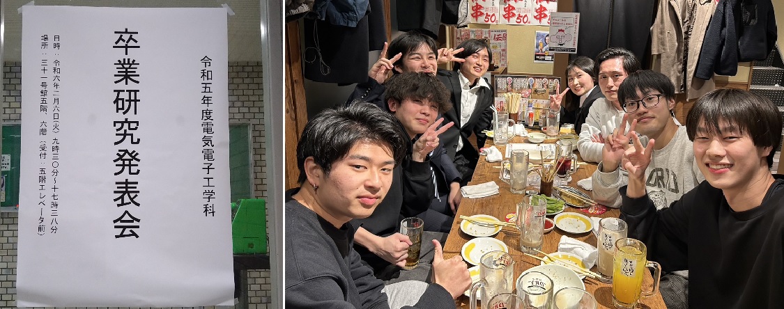 近畿大学電気電子工学科卒業論文発表会が開催されました. 学部4回生の押田大輝さん,北谷優弥さん,坂井俊斗さんが発表を行いました. 他研究室の先生方から幅広い質問をいただきました. 皆さんしっかりと質疑応答に対応できており,一年間の成果を存分に発揮できました. 発表お疲れさまでした! それぞれのタイトルはこちらに記載しています.